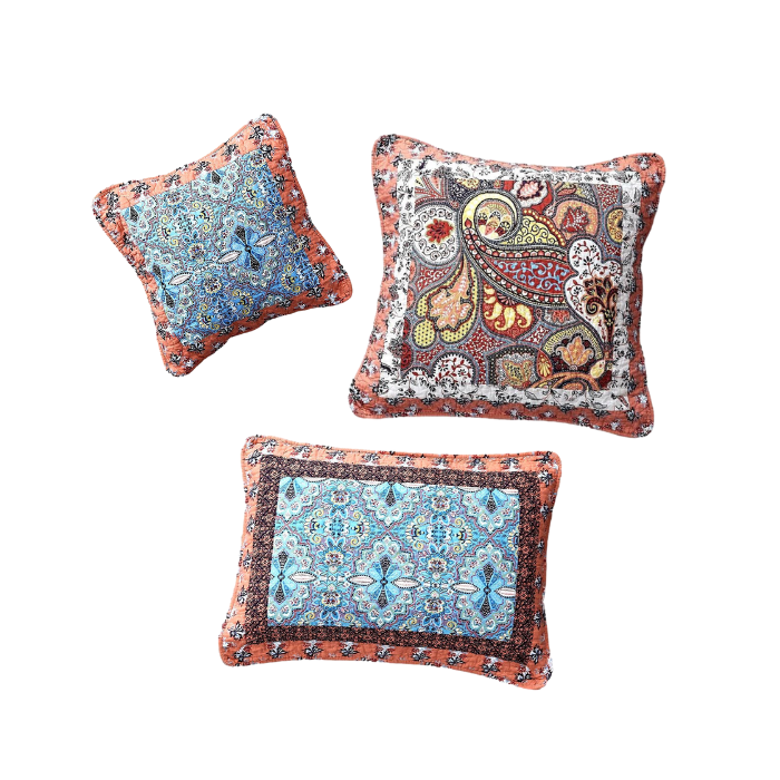Tache Bohemian Desert Medallion Boteh Paisley Orange Blue Taupe Quilt Set (TJ3502)
